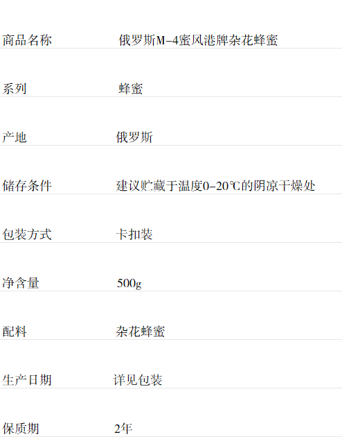 俄罗斯M-4蜜风港牌杂花蜂蜜
