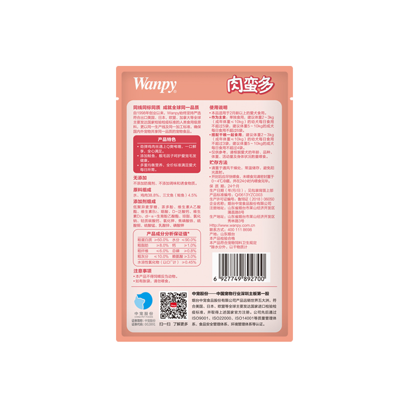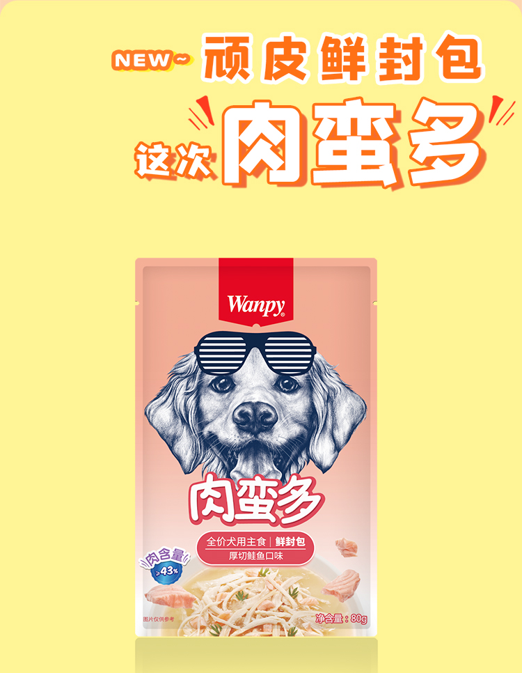 Wanpy顽皮肉蛮多系列全价犬用主食鲜封包厚切鲑鱼口味80g